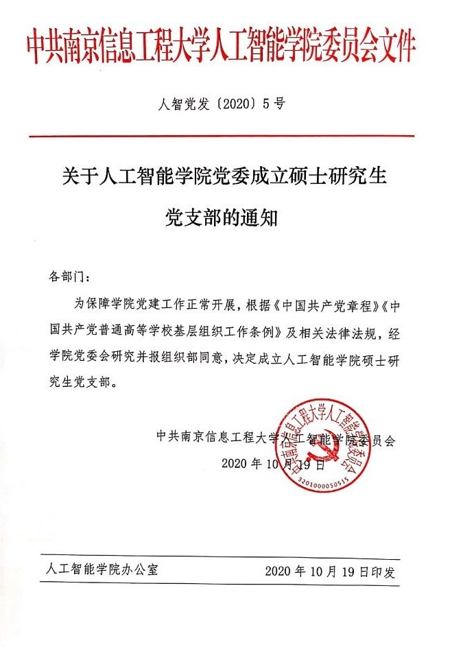 关于人工智能学院党委成立硕士研究生党支部的通知
