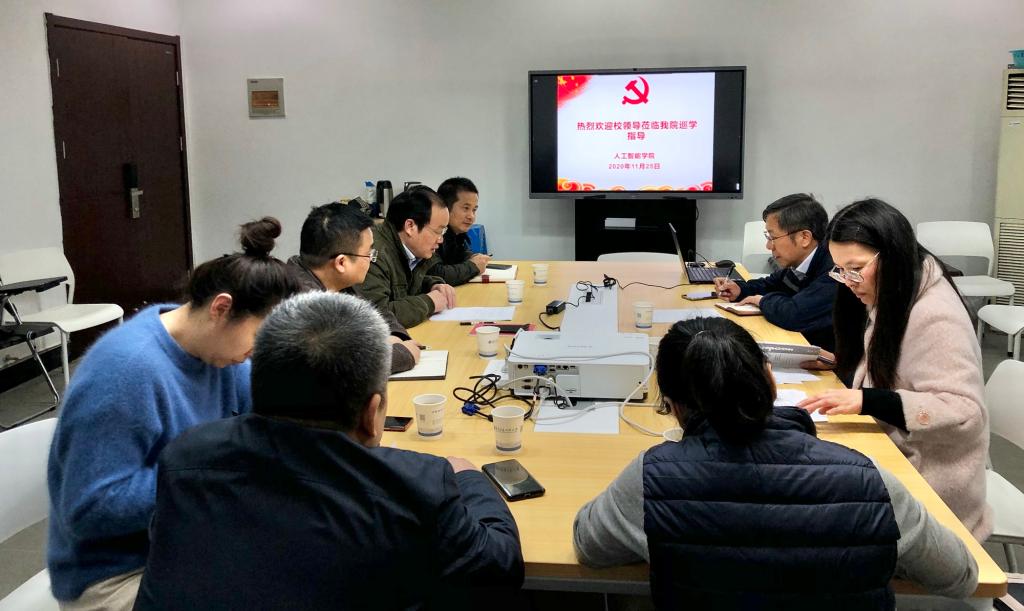 11月25日下午,校党委常委、副校长戴跃伟一行二人来到人工智能学院,巡学旁听学院党委理论学习中心组学习活动。此次活动的主题是“以习近平新时代中国特色社会主义思想为指引,将人工智能‘思政元素’融入到专业教学中”。活动由学院党委副书记(主持工作)倪东鸿同志主持,学院理论学习中心组全体成员及相关人员参加。