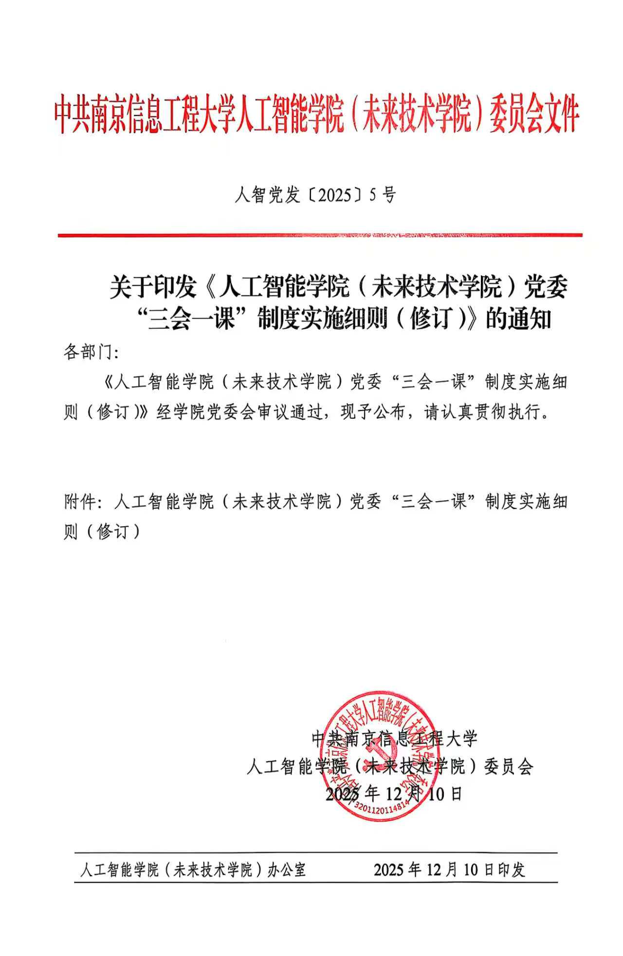 关于印发《人工智能学院(未来技术学院)党委“三会一课”制度实施细则(修订)》的通知