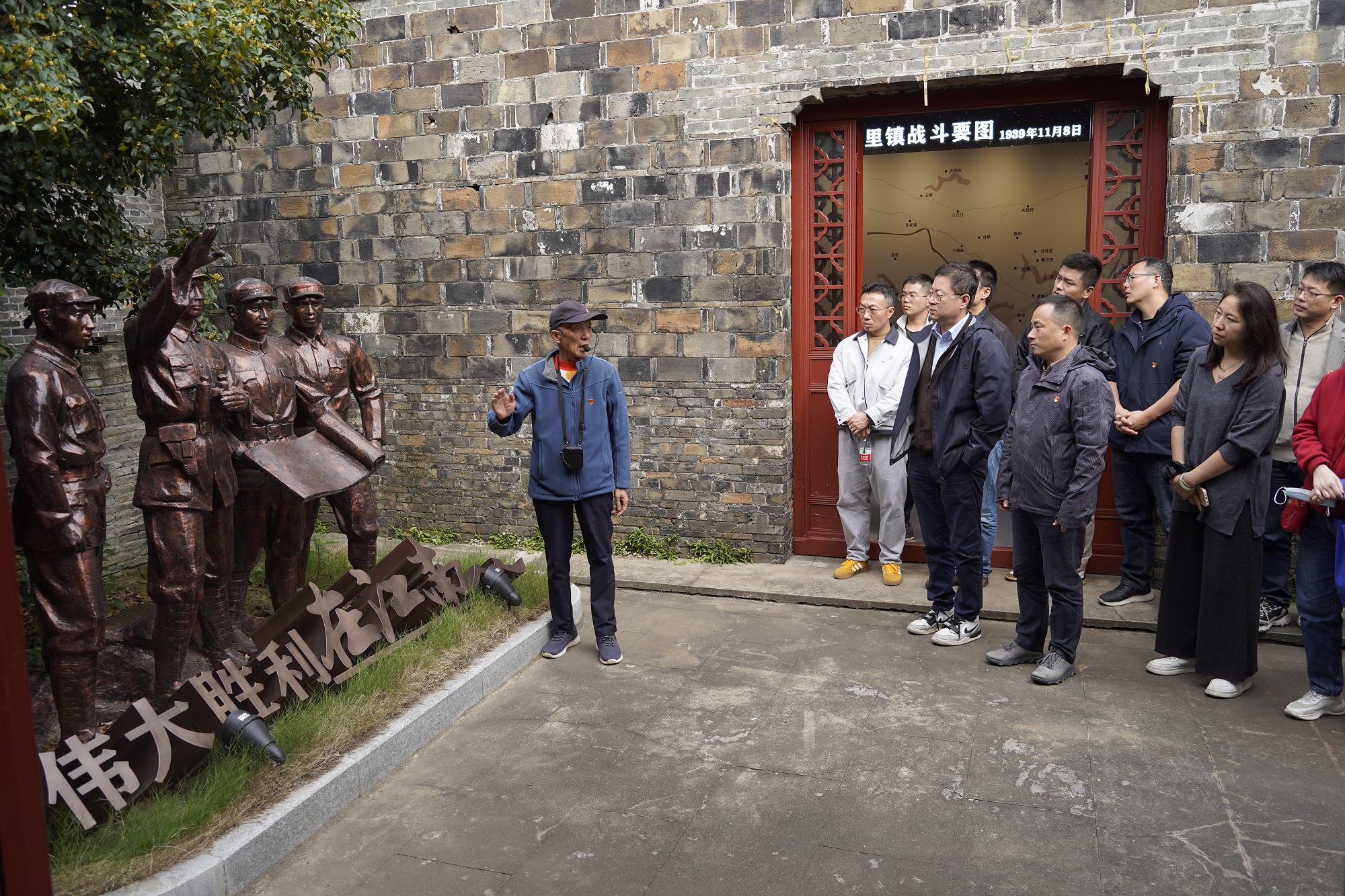 在位于丹阳延陵镇的省级文保单位贺甲村抗战旧址,贺甲村老支书口述历史,深情讲述了“延陵大捷”的英勇事迹。贺甲战斗又称延陵大捷,是抗日战争时期新四军在苏南地区歼敌最多、战斗最激烈的一次战斗。铜塑雕像、黑白照片都真实详细地展现了那段战火纷飞的历史,革命前辈顽强拼搏的爱国精神让大家倍感震撼;大家随后来到了九里景区,一片祥和宁静的乡村美景,正是先烈们为之奋斗换来今天美好生活的缩影。
